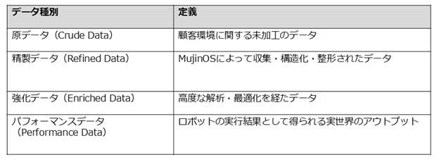 本取組では、その現場データを以下4種に分類し権利帰属を体系的に整理することで、顧客の権利を尊重しながら、Mujinの知的財産としての価値を守り、ユーザー企業様が安心して活用できるよう、MujinOSの競争優位性と信頼性の両立を図っています。