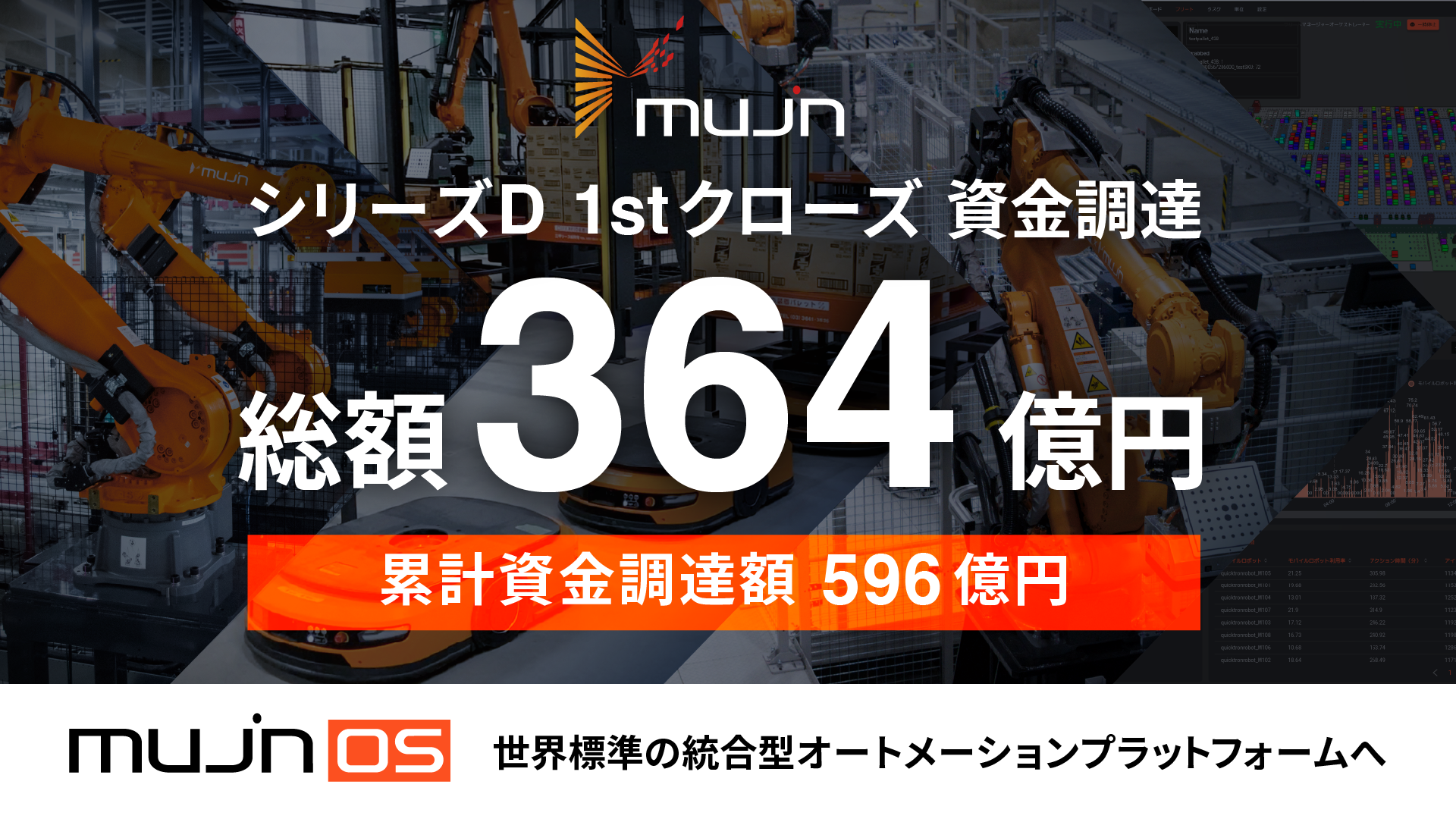 総合オートメーションテクノロジー企業のMujinは、シリーズDラウンドにてNTTグループ様およびカタール投資庁様(Qatar Investment Authority)を共同リード投資家として、三菱HCキャピタルリアルティ株式会社様、Salesforce Ventures様から第三者割当増資による総額209億円の調達を実施しました。加えて、複数の銀行や金融系事業会社各社より総額155億円のデット調達を実施しました。これによりシリーズDラウンドのファーストクローズでの資金調達総額は364億円となり、当社の累計資金調達額は596億円に達しました。