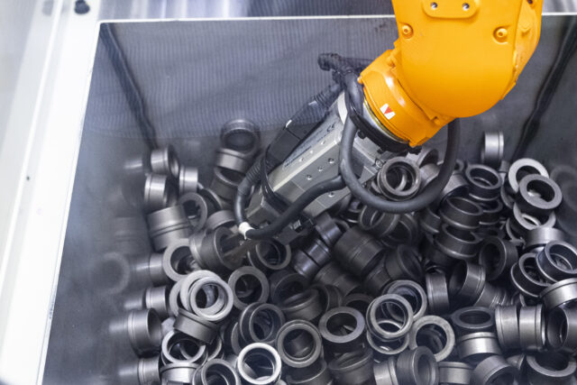 3Dビジョンを組み合わせた複雑なロボットシステムを要するバラ積みピッキング工程を、1台のロボットに集約することで、各加工機ごとにロボットを配置する場合と比べ大幅なコスト削減・省スペース化を実現されました。